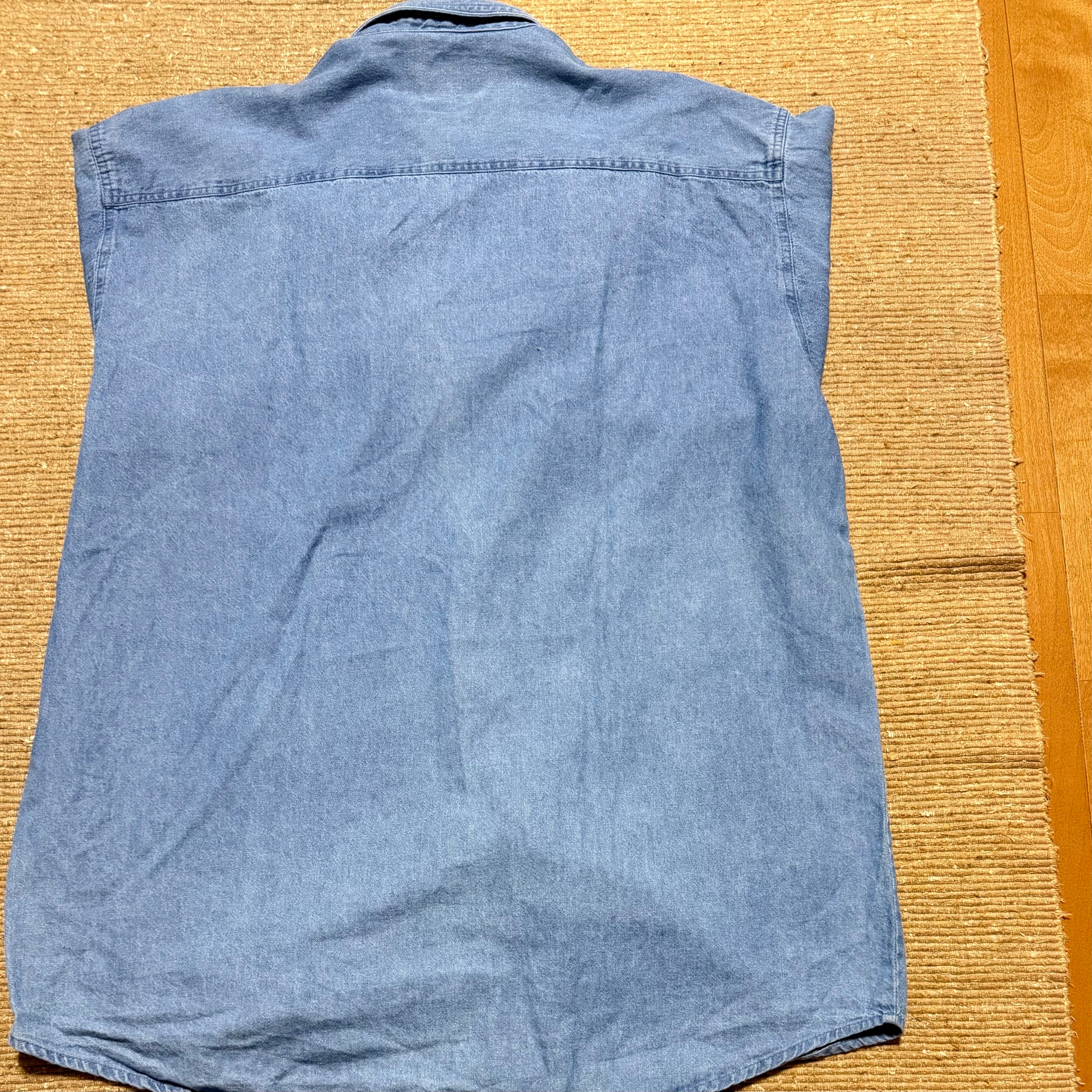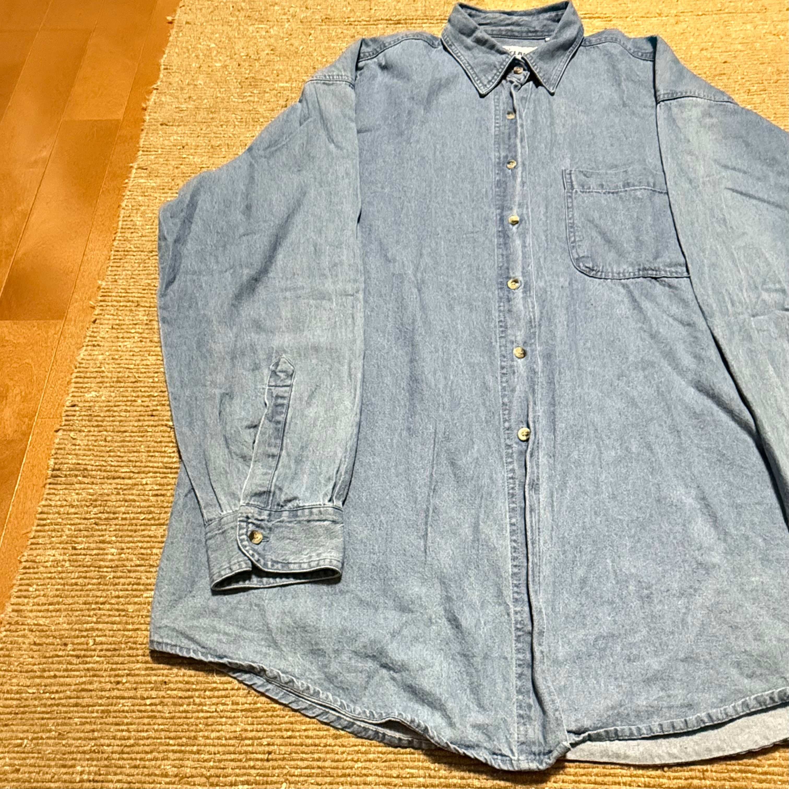 驚異の3XLとなっており、オーバーシャツとしての利用やインナー使い、タックインなど様々なスタイリングができ、デニムシャツというよりかはワークシャツライクな雰囲気です。