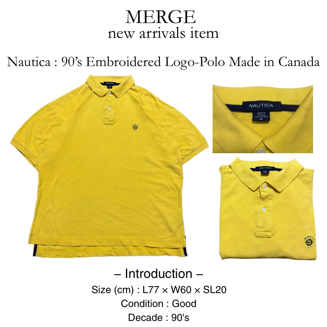 【 Nautica | 90’s Embroidered Logo-Polo / Made in Canada 】